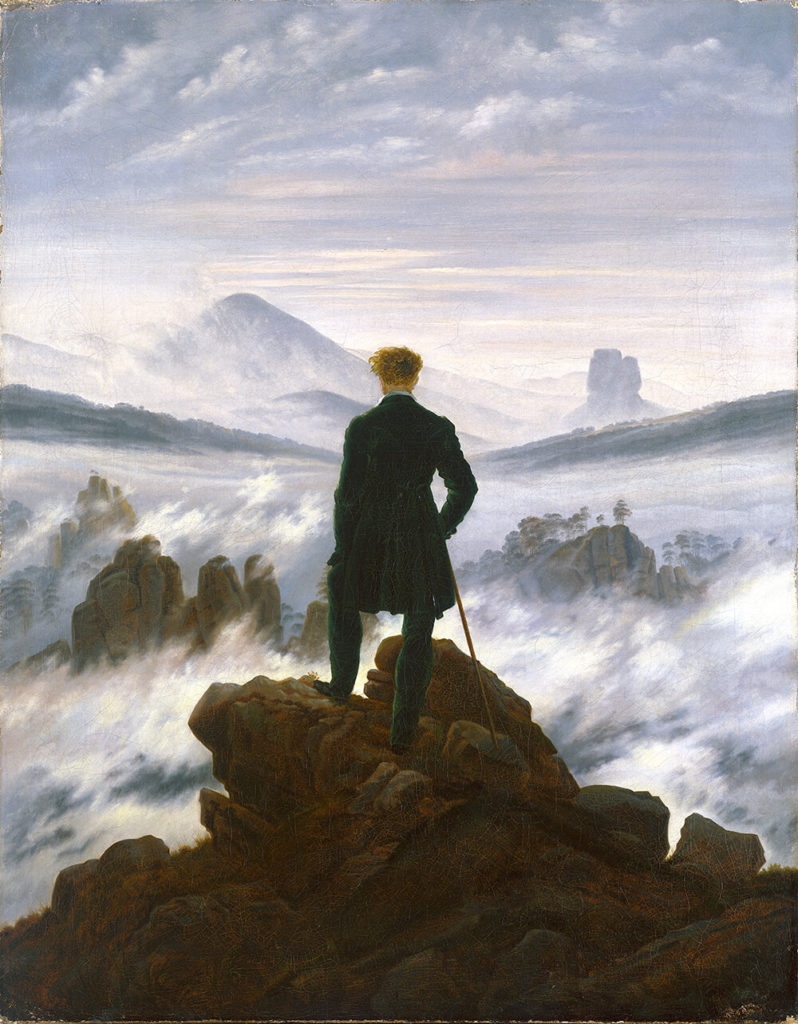 卡斯柏.大衛.弗瑞德里希(Caspar David Friedrich,1774–1840)《霧海上的旅人》(Wanderer above the Sea of Fog),1818年德國漢堡美術館一位...