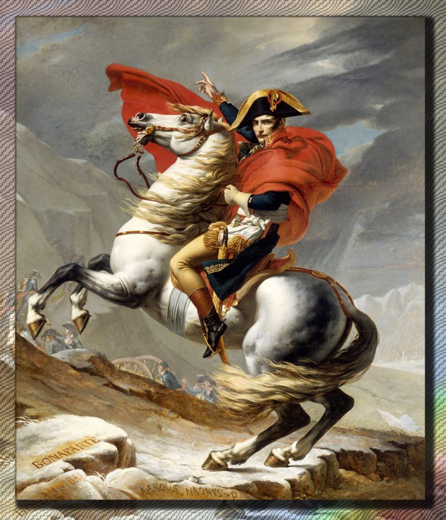 拿破崙:「約瑟芬,走,咱們騎馬去兜兜風。」約瑟芬:「你講話能不能浪漫一點?加個寶貝之類。」拿破崙:「約瑟芬,走,咱們騎我的寶貝馬兒去兜兜風。」《拿破崙翻越阿爾卑斯山》,法國知名畫家大衛(Jac...