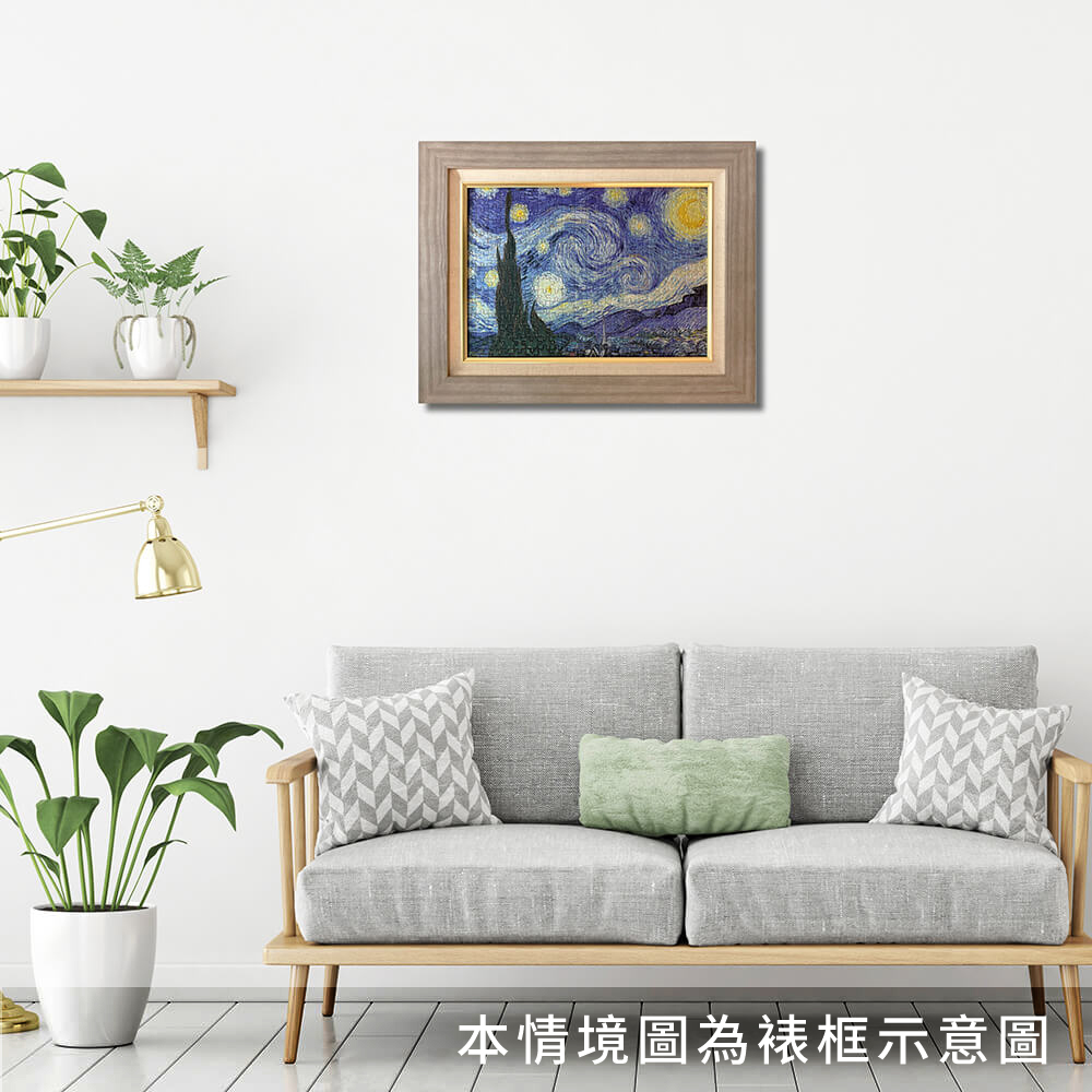 ※ 框條染色每批都會有些微的不同,實際成品顏色可能會有少許差異,外框木紋自然呈現,內框均為米色麻布套框,高雅大方。
