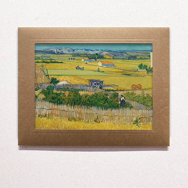 ※ 牛皮紙框包裝設計,可直接懸掛或立於桌上展示,附贈精美書卡,背面提供畫框使用說明。